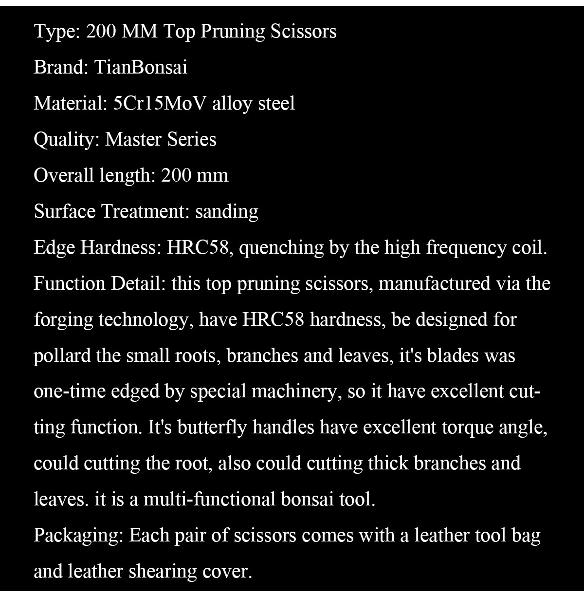 Master series 200 mm bonsai scissors forging by 5Cr15MoV Alloy Steel bonsai tools from TianBonsai