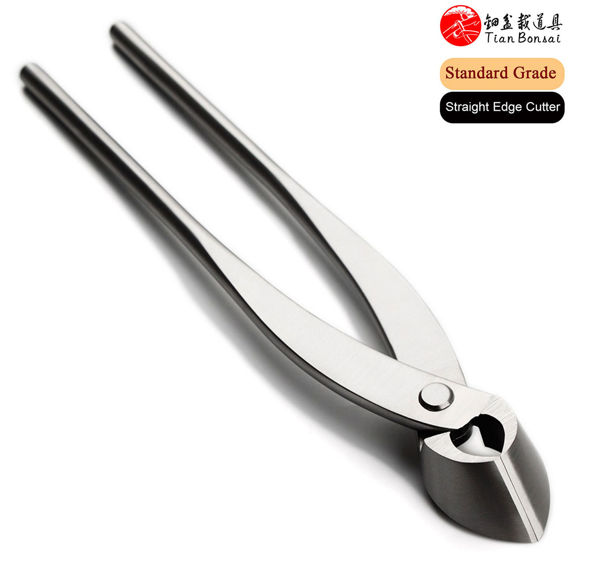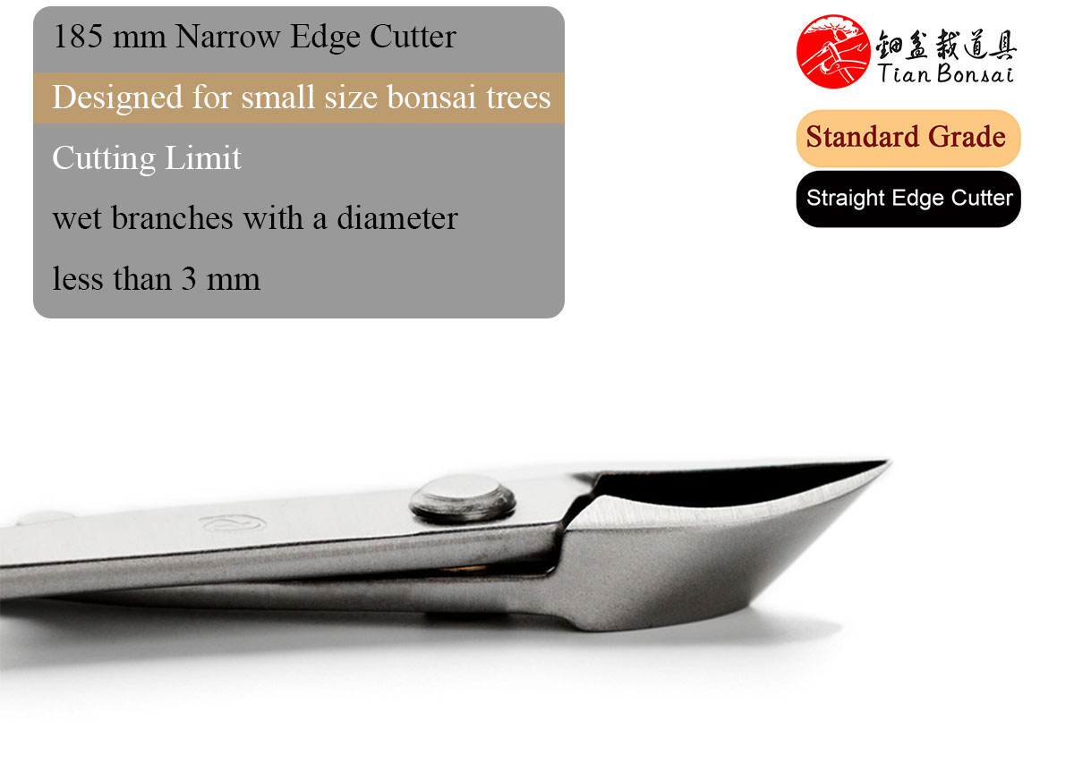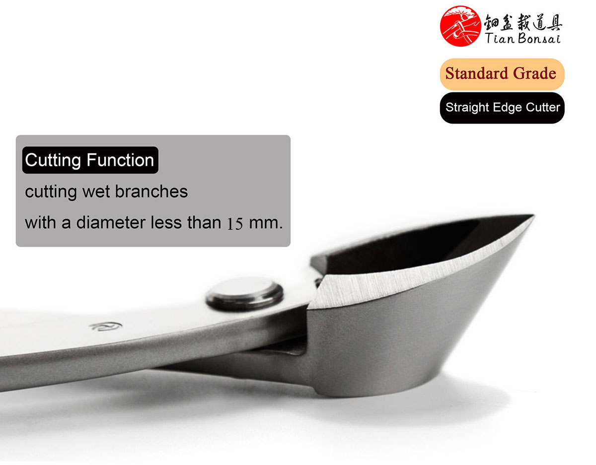 The straight edge branch cutter is a specialized bonsai tool designed for the precise removal of branches. Its primary function is to cut branches flush to the trunk or main branch while creating an elongated, concave wound that promotes optimal healing.