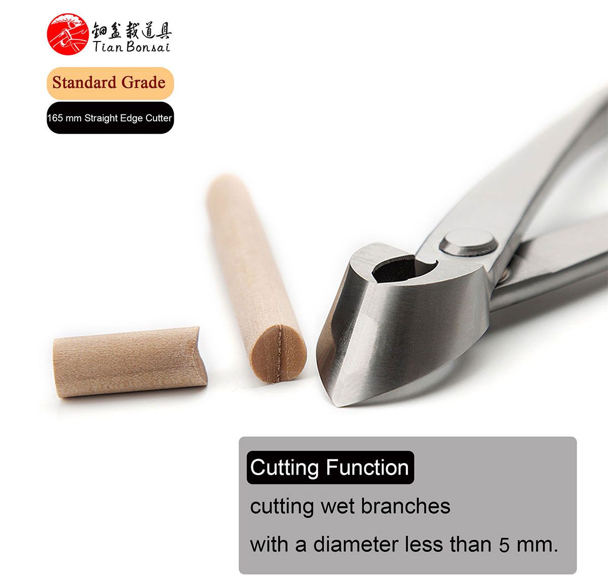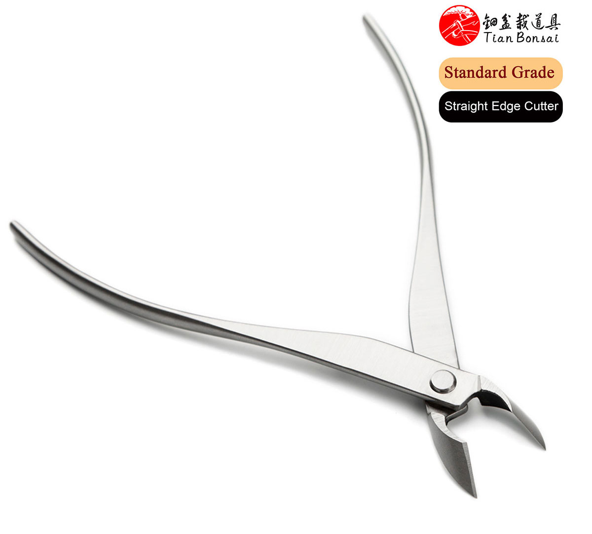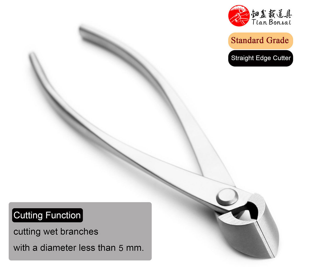 The straight edge branch cutter is a specialized bonsai tool designed for the precise removal of branches. Its primary function is to cut branches flush to the trunk or main branch while creating an elongated, concave wound that promotes optimal healing.
